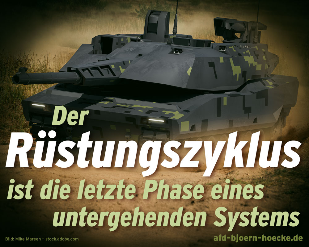 Historisch betrachtet kann man auch sagen: Der Rüstungszyklus ist die letzte Phase eines untergehenden Systems. Danach kommt der Krieg — oder eine Revolution.