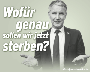 Diese Politiker sind nicht nur durch ihren eigenen Lebenslauf völlig unglaubwürdig, sie kommen auch ins Stottern, wenn sie die Gründe darlegen sollen, wofür junge Menschen in unserem Land notfalls in den Tod gehen sollen. Das müssen schon sehr gute Gründe sein! Hohle Phrasen genügen dafür nicht.